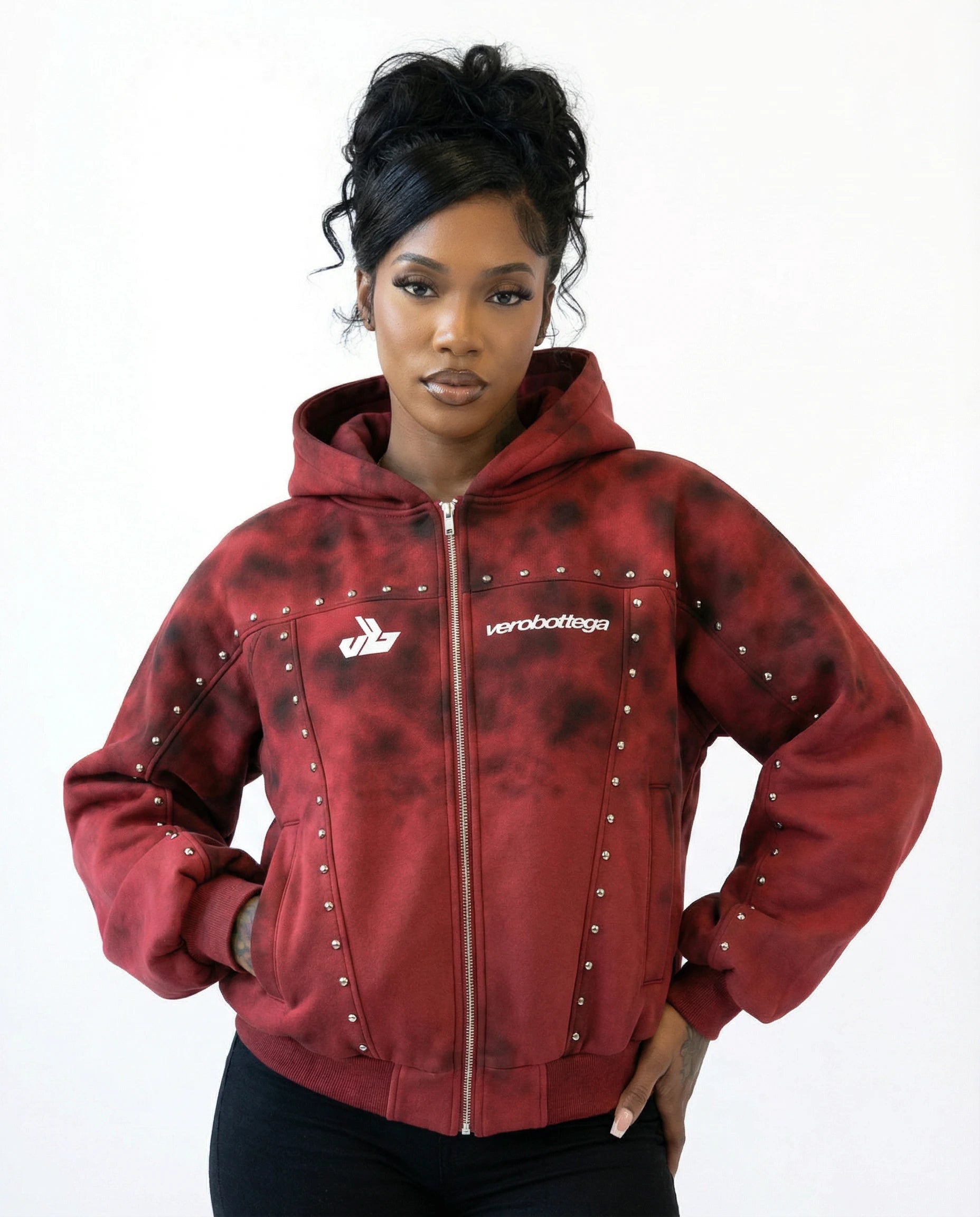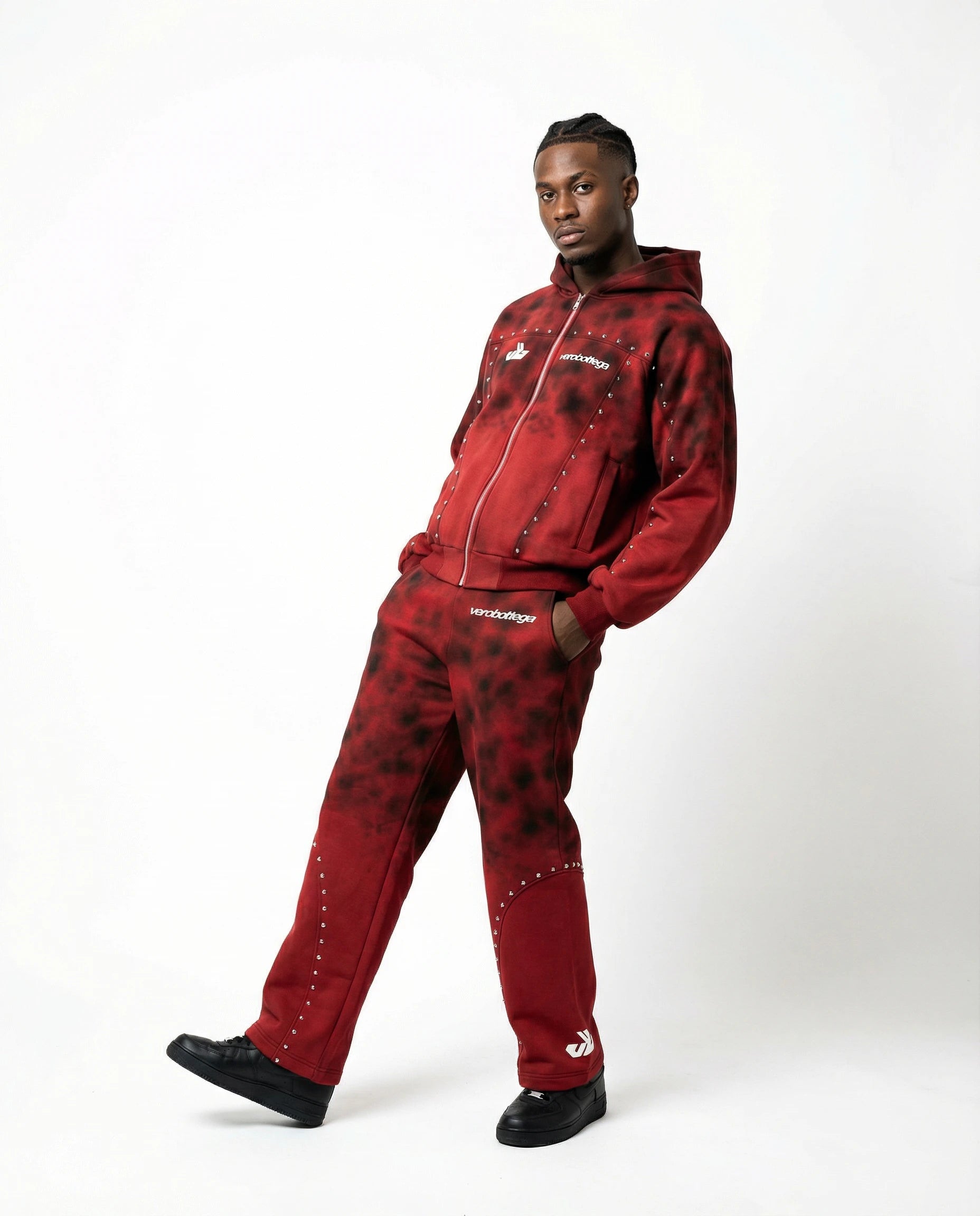 Two-Tone tracksuits carefully crafted at each seam, metal studs, Full Metal Zipper, Oversized 3 panel-hood, Jumbo/Reg DTG prints, Ribbed cuffs and hem.